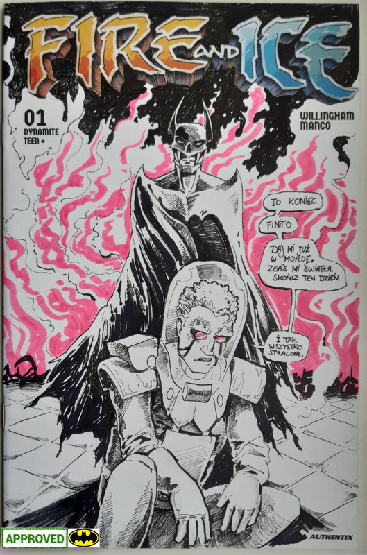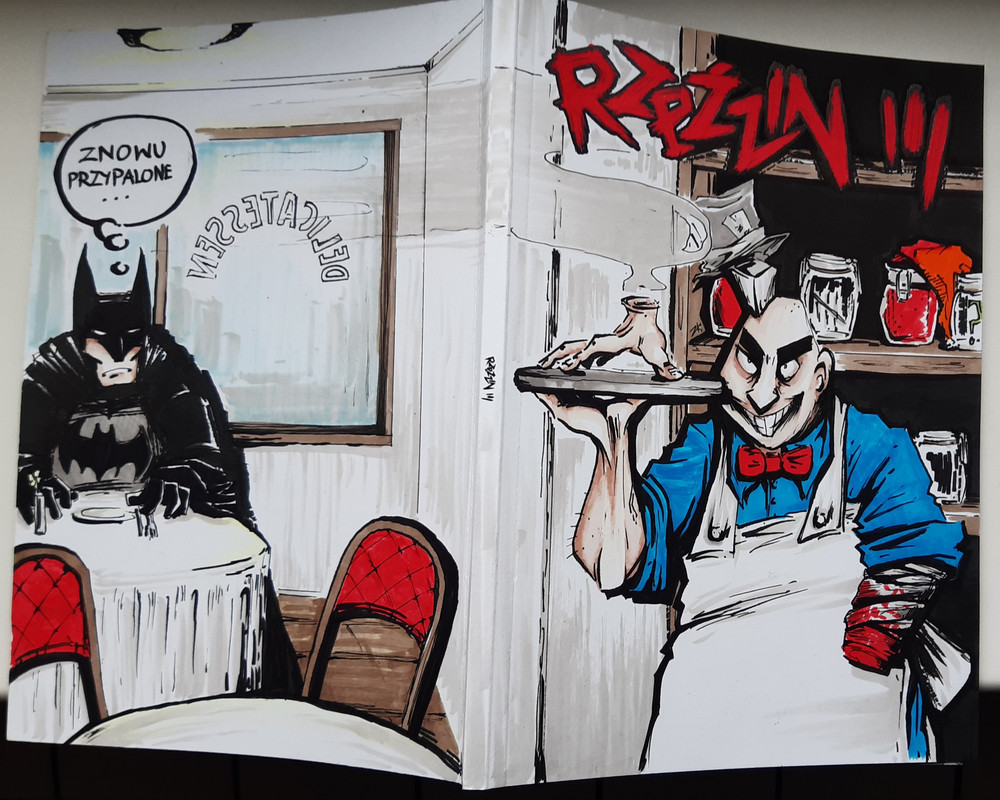 Do pochwalenia. Kolejny raz nienażarty Batman. Uważni dostrzegą nawiązania do dwóch innych blanków prezentowanych w tym wątku. Tworzą dość spójną narrację moim zdaniem. Tu dodatkowo nawiązanie do grafiki, która została stworzona przez Zvyrke, na potrzeby zbiórki. Na rzeczonej Rzeźnik rozpruł...Batmana.