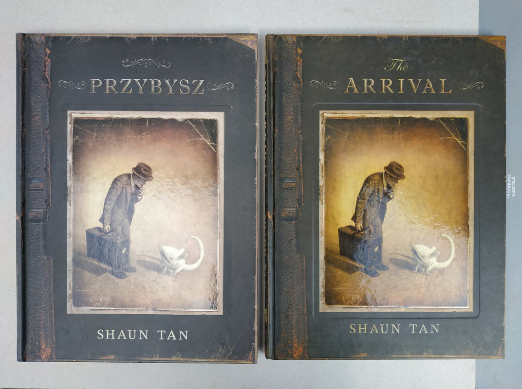 Wreszcie przyszedł do mnie "Przybysz" i tylko informacyjnie: papier jest jednak kredowy, to biały chyba półmat, na Gildii jest błąd. Nieźle wydane, choć istotnie różni się od wydania angielskiego (ja mam z 2007), przede wszystkim spójnością kolorystyczną (to dwie odmienne wersje tonalne).