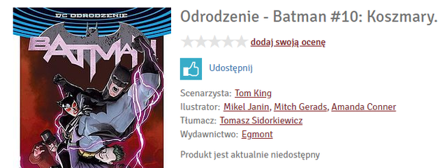 Ktoś ma jakiś pomysł dlaczego Batman Koszmary, czyli 10 tom obecnej serii jest niedostępny na gildii do pre ordera? Jakaś zmiana daty premiery?