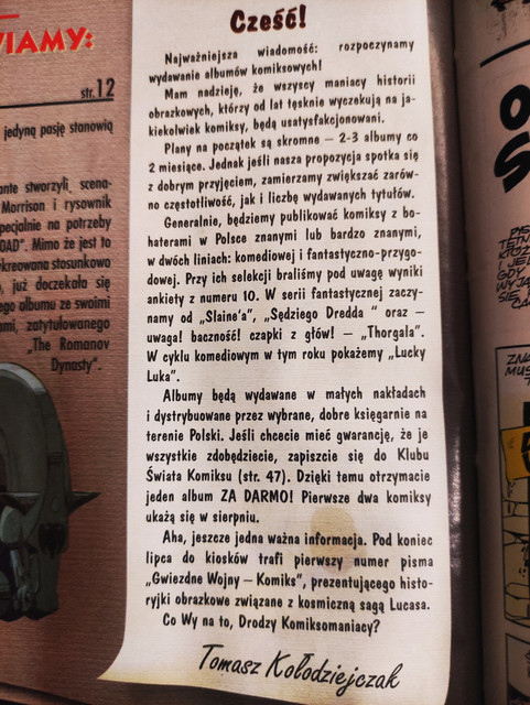 25 lat minęło od pierwszego numeru Świata Komiksu ależ ten czas leci, pamiętam jak dziś że to pismo było moim spełnieniem marzeń, coś pięknego. Mogliby wydać jakiś specjalny numer magazynu z tej okazji w normalnym formacie i na papierze takim samym jak wtedy.