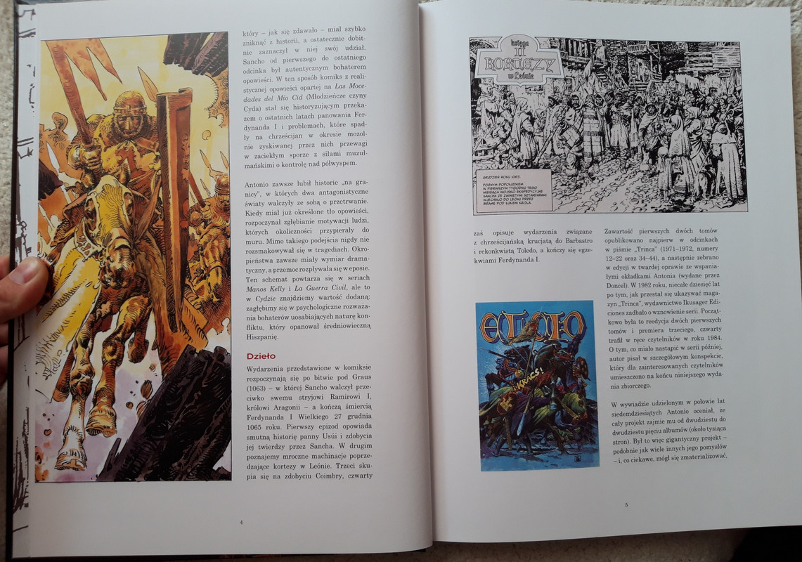 EDIT: dla porządku i żeby ktoś się nie rozczarował, podam, że czas akcji to od ok. 1063 r. do 1065 r. (śmierć Ferdynanda I Wielkiego). Cztery albumy tworzą zamknięty cykl, ale autor planował kontynuację - całe przedsięwzięcie miało mieć 20-25 albumów i opowiadać historię życia Cyda i średniowiecznej Hiszpanii jego czasów. Niestety problemy na rynku wydawniczym sprawiły, że aż do śmierci Palacios nie zdołał kontynuować cyklu.