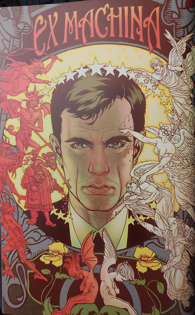 Następne co wpadło mi ręce i do czego od dłuższego czasu przymierzałem się do lektury to seria Ex Machina. Całość już za mną za mną i ręce same składają się do oklasków, to się samo czyta !  Świetnie napisany bardziej obyczajowo niż superbohaterski komiks którego siłą i motorem napędowym są wyraziste postaci, dialogi pełne humoru i ciętych ripost oraz  pewna aura tajemnic podchodzenia mocy które po troszeczku są czytelnikowi odkrywane.