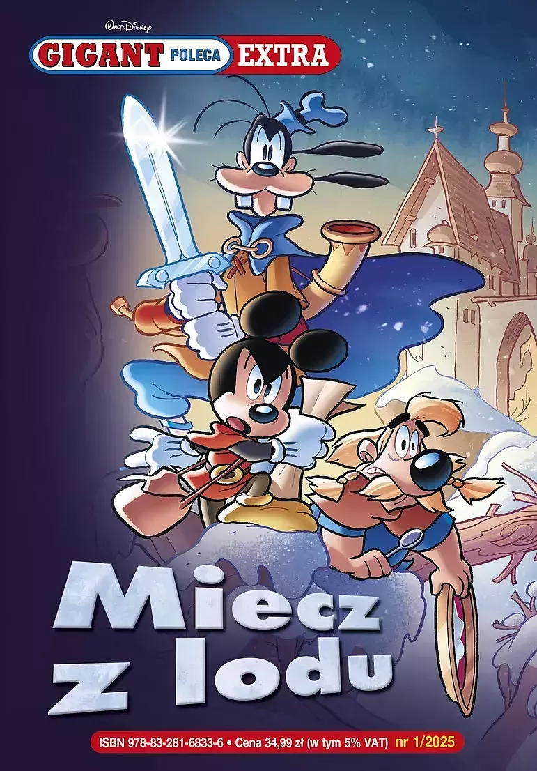 Akcja "Miecza z lodu" rozgrywa się w krainie Argaar, świecie fantasy wyraźnie inspirowanym mitologią nordycką z pewnymi naleciałościami SF w postaci obecnej tu i ówdzie nowoczesnej technologii (skąd ja znam takie połączenie?). Grający główne role Goofy i Miki nie są jednak alternatywnymi wersjami samych siebie, a tymi dobrze znanymi z komiksów, którzy ze swojej rzeczywistości przenoszą się do sąsiedniego wymiaru. W wyniku pewnych wydarzeń Goofy zostaje uznany za krewnego dawnego herosa, Alfa, i jako taki zostaje poproszony przez mieszkańców krainy o pomoc w walce z ciemiężącym Argaar Księciem Mgieł. Tak pokrótce prezentuje się fabuła pierwszej z zawartych tu opowieści – a tych jest pięć (podzielonych na w sumie 12 części): oryginalna trylogia ze scenariuszem i rysunkami De Vity z lat 1982-1984, napisana wspólnie z Fabio Michelinim część czwarta z 1993 roku oraz świeża, bo wydana w 2022 roku kontynuacja ze scenariuszem Marco Nucciego i grafiką Christiana Canfailly. Kolejne historie to kolejne odwiedziny tego świata, nowe zagrożenia, powroty dawnych antagonistów i tym podobne motywy.
