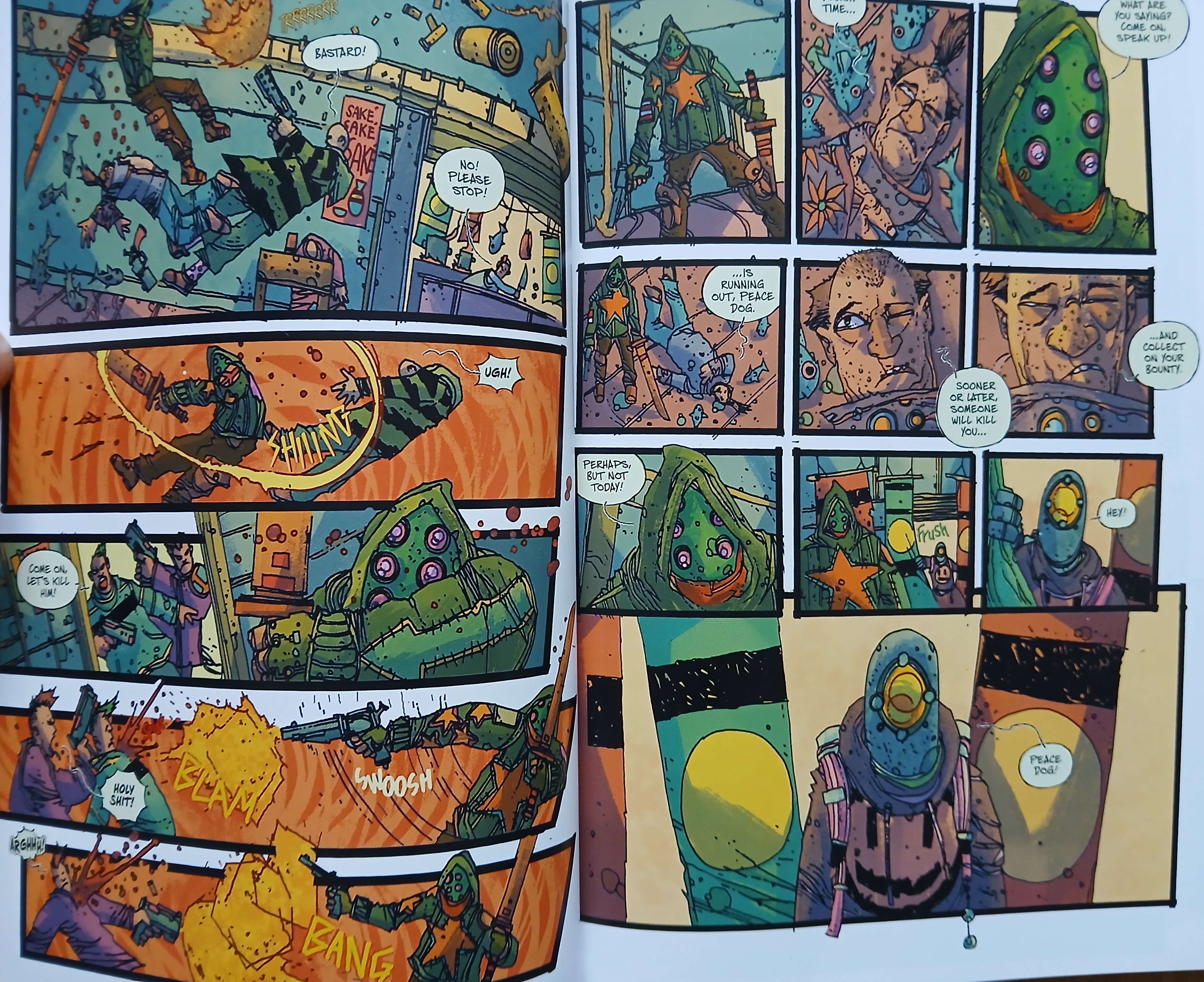 Rycerz Psi Łeb - ależ to dobre! Wątek skupiony na turniejach rycerskich i bohaterach, którzy w nich uczestniczą i nie tylko. Wchodzi przyjemnie ze względu na poprowadzoną opowieść z wstawkami niczym z mockumentów. A rysunki tylko dopełniają historię. Doskonale wykonane, a sceny walk to majstersztyk - jak jest dynamicznie, to kadry też takie są. I wszystko świetnie pokolorowane. Na pewno będę serię kontynuował.