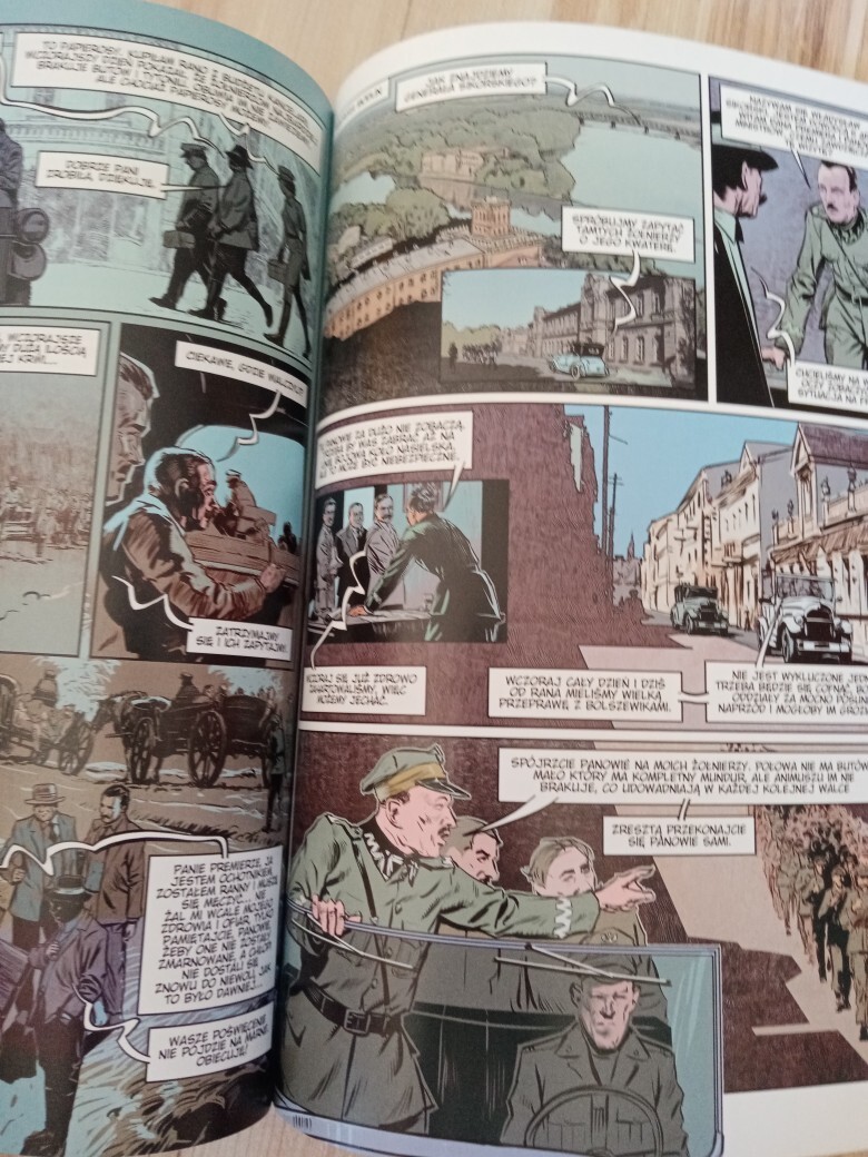 Myślę, że to Wincenty Witos. Czułem, że to polski komiks, ale nie mogłem wpaść na to co to może być. Najciekawsze jest to, że przez przykładowe rysunki (i cenę) nawet dorzuciłem kilka dni temu Witosa do koszyka, ale kadrów z zagadki nigdzie nie widziałem.