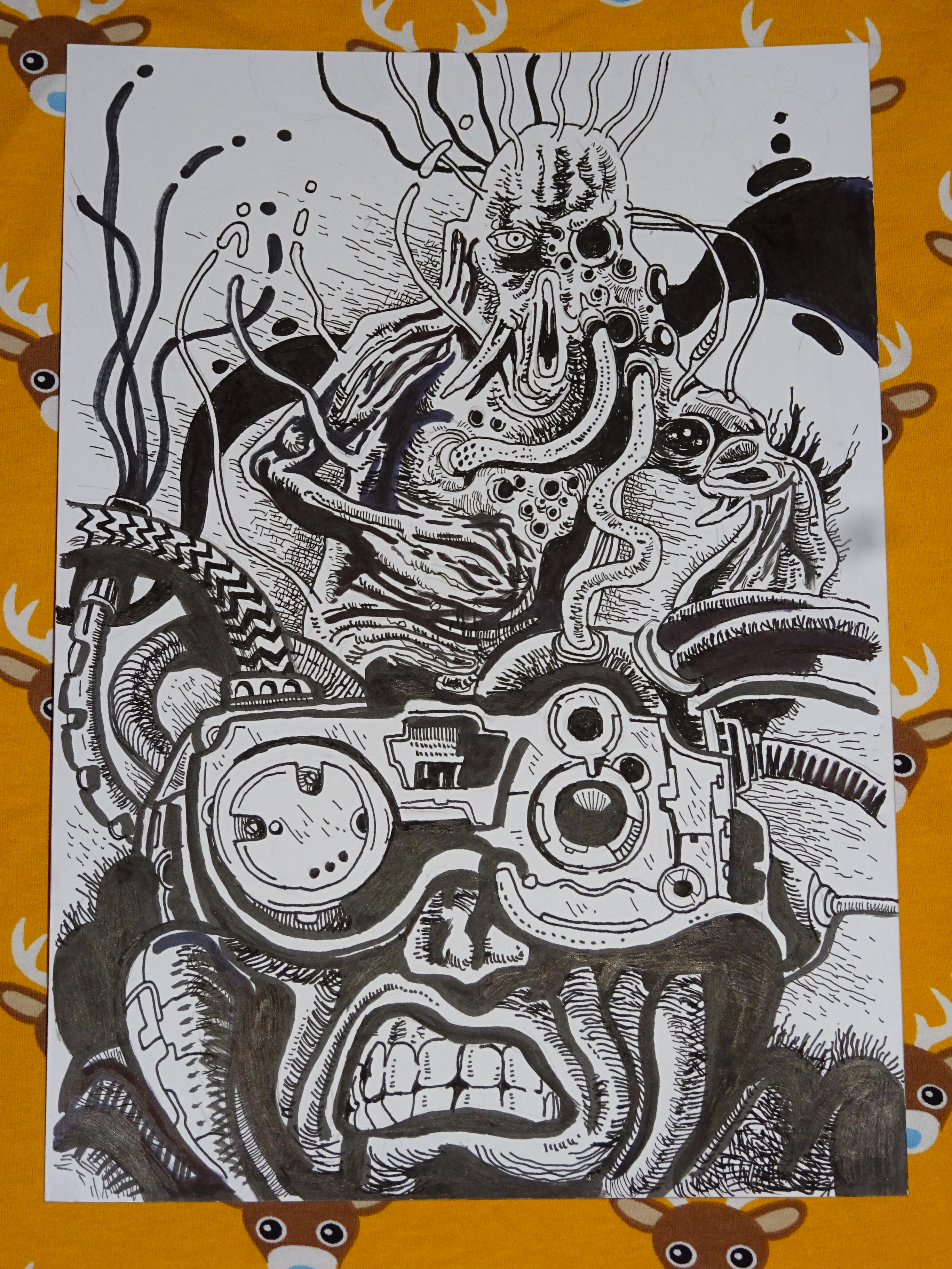Nagroda nr 5 - oryginał rysunku (format A4) opublikowanego w antologii Slime Fiction od Piotra "Jaszczu" Nowackiego: