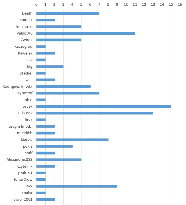 Miałem wrażenie że z postaciami będzie za prosto. Są zbyt charakterystyczne, a zagadka musi pozostać w jakimś stopniu wyzwaniem. Może bym wrzucił je po tej podpowiedzi: