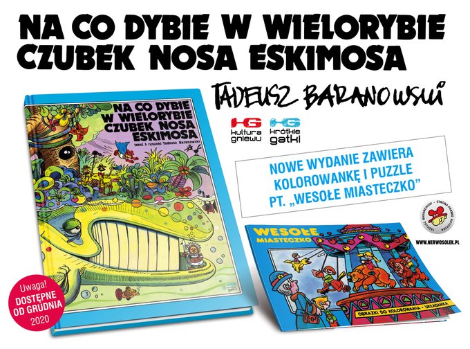 Czas na ogłoszenie ostatnie tegorocznej nowości / nienowości, bo mowa o trzecim naszym wydaniu kultowego "Na co dybie w wielorybie czubek nosa Eskimosa" Baranowskiego! Tym razem unikalnym dodatkiem będzie kolorowanka/puzzle "Wesołe miasteczko", prawdziwa gratka dla fanów artysty!
