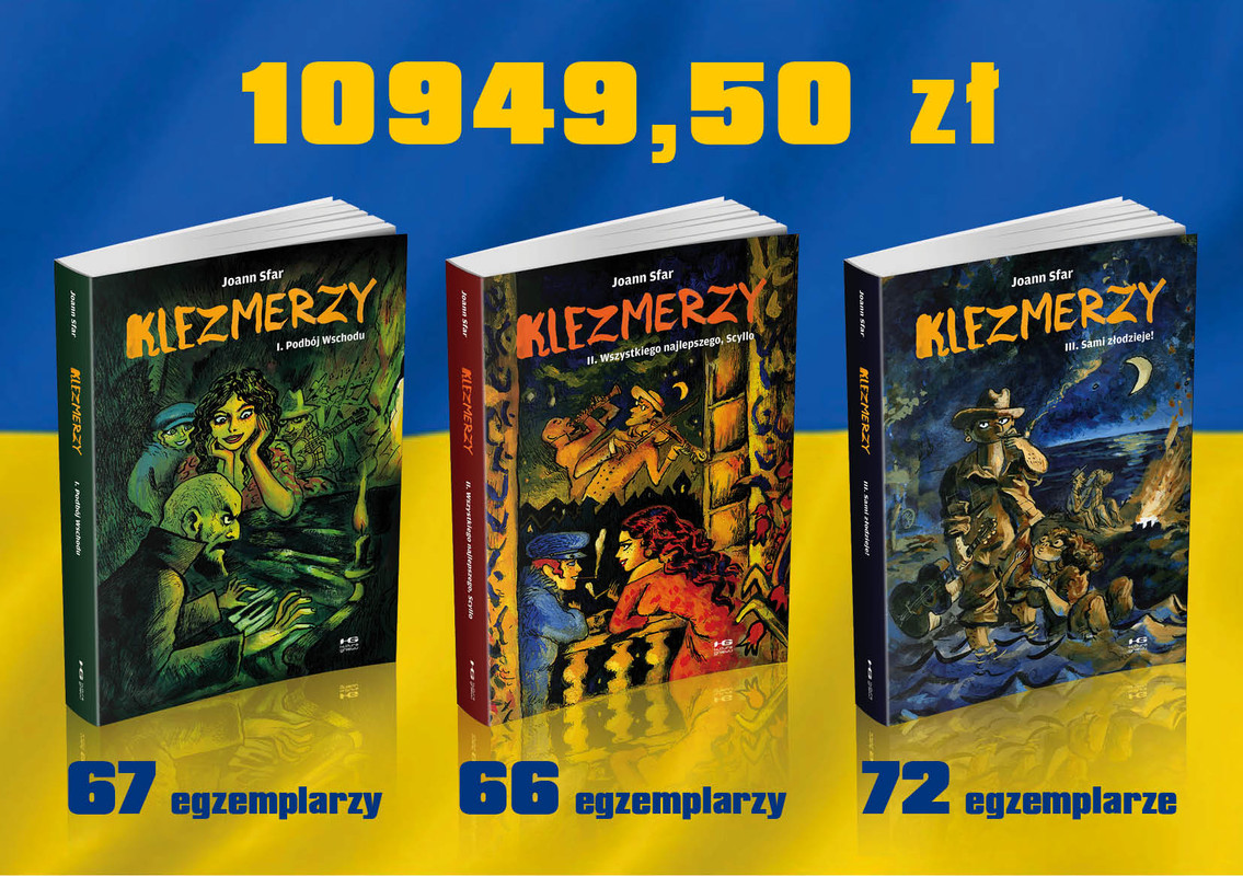10 949,50 PLN - za taką kwotę kupiliście w ciągu tygodnia komiksy z serii "Klezmerzy" Joanna Sfara, a my przekazaliśmy pieniądze Polskiej Akcji Humanitarnej, by pomóc Ukrainie.