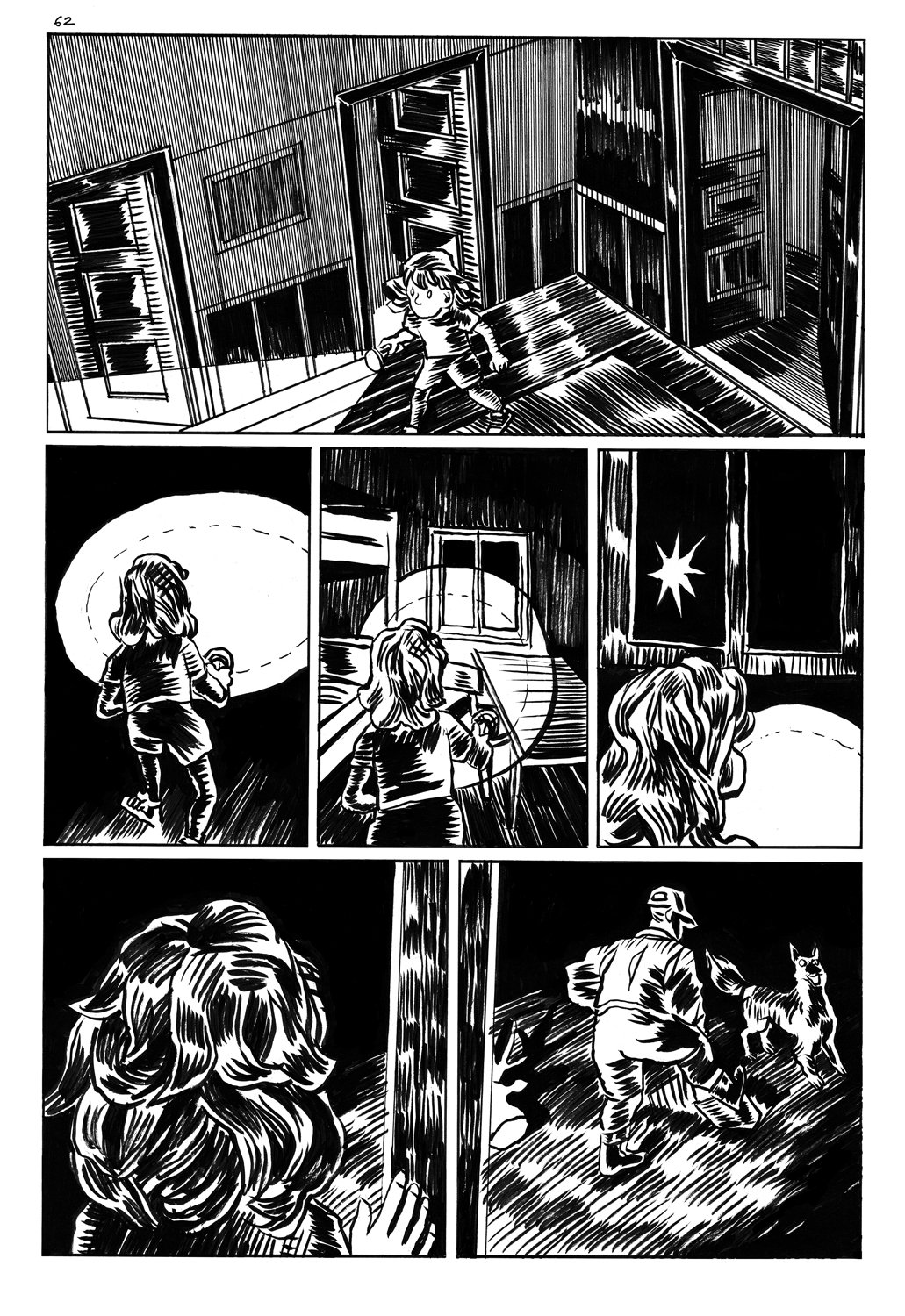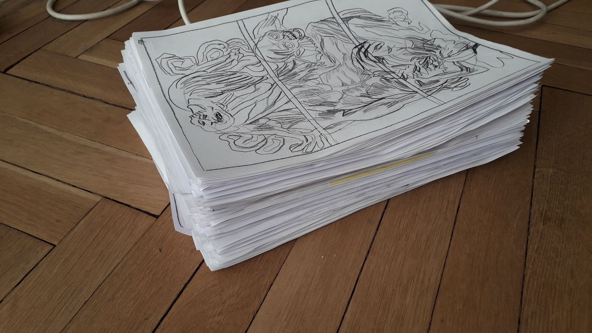 Storybord chciałem zamknąć w 200 stronach. Wyszło mi 350, dlatego, że trzeba było utrzymać równy rytm kadrów. Mam strony z klasycznymi 9 kadrami, ale mam też dużo plansz z 3-4, jak podpatrzyłem u Ani Krztoń. Spodziewam się utrzymać średnie tempo jednej strony komiksu dziennie, a z obliczeń wynika, że będzie narysowane w marcu 2023. Ale od narysowania do druku jeszcze długa droga. Pierwsze plansze z tej historii, zostały opublikowane w katalogu festiwalowym MFKiG 2020. Miałem również pewien abstrakcyjny pomysł związany z kwiatkami, który w 2019 wydrukowałem w art booku "Black pollen", w którym najstarsze prace są z 2018. To jest przykład tej długiej drogi. Drugi scenariusz, jak można przypuszczać, jest ambitniejszy. Co tu dużo mówić, nauczyłem się mnóstwa rzeczy rysując "Chłopaki". No i jest o dziewczynach. Jestem ciekawy, czy potrafię napisać coś fajnego, porzucając chłopacką perspektywę. To też jest bardzo odświeżający eksperyment (jak kiedy wszystkie piwka i wódeczki zamieniasz na słowo sok). O "Słodkich Chłopakach" ktoś napisał: "plansze czarne jak smoła". A ja mówię: czarno to dopiero będzie. Użyję o połowę mniej czerni i pół komiksu narysuję w wakacyjnym słońcu i jeszcze podam to jako komiks obyczajowy o dwóch dziewczynach na wakacjach w domku u babci a to i tak będzie taki komiks, że po przeczytaniu pójdziesz pod prysznic. Są takie pozycje, które mówią o rzeczach ważnych, o jakieś formie określenia własnej tożsamości, albo o relacjach rodzinnych, w których rozpoznajemy własne relacje, albo o śmierci bliskich. Jest "Dom" Roci, "Koniec Lipca" Rostowskiej albo "Rzeczy, których nie wyrzuciłem" Wichy. To "Smoła" nie będzie taka, bo będzie horrorem. W czasie pisania robiłem maraton "Miasteczka Twin Peaks" i innych filmów Lyncha do takiego momentu, w którym bałem się w nocy wyjść z łóżka i pójść do łazienki, a w łazience spojrzeć w lustro. Szymon Holcman powiedział, że nie rozpoznał w "Smole" Lyncha. Mój kolega Radzisz po przeczytaniu storybordu powiedział, że strasznie mu się kojarzy z "Silent Hill". Nie znam niestety "Silent Hill", ale wiem, że diabeł biega nocą po leśnych drogach a trujące kwiaty, trujące liście drzew, białe motyle krążą wokół mnie.