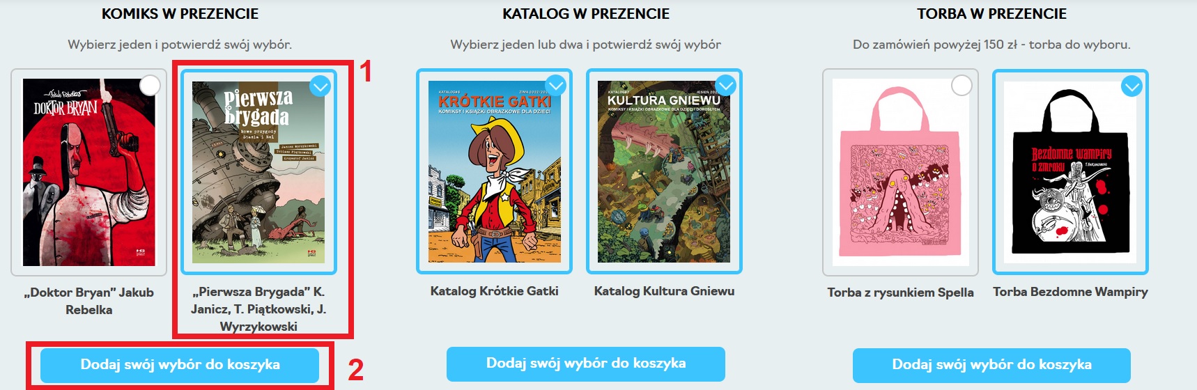 Bardzo często zdarza się niestety, że klienci nie potwierdzają swojego wyboru gratisu przyciskiem. Bierzemy to na klatę i dosyłamy w osobnej paczce jednocześnie zastanawiając się z informatykami, jak tę niedoskonałość w prosty sposób poprawić.