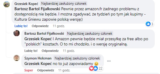 Będziemy wdzięczni za informację kiedy to ogłosicie. Po miesiącu czy po pół roku od wydania części 1? Mówiąc wprost - jak zdecydujecie, że nie, możemy chcieć kupić tom 2 po angielsku. A on obecnie jest wyprzedany i trzeba zapolować.