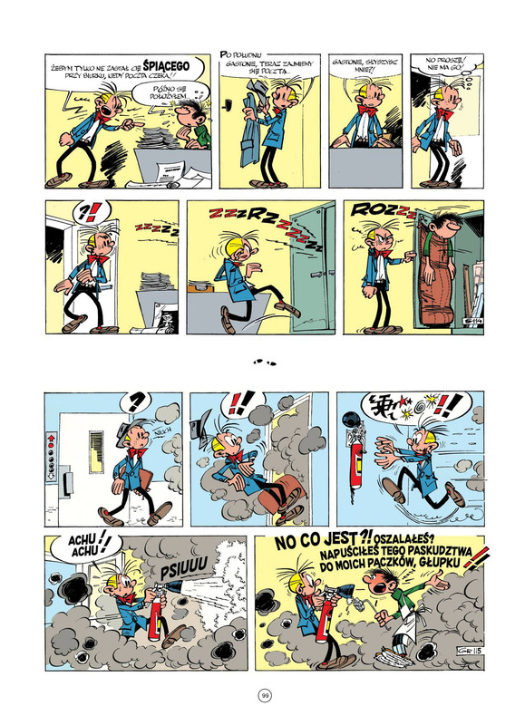 Wreszcie mamy zgodę od licencjodawcy! A zatem oficjalne ogłaszamy i staramy się by zdążyć na Komiksowa WarszawaGASTONKsięga 1Scenariusz i rysunki: André Franquin, Jidéhem Tłumaczenie z języka francuskiego: Marek Puszczewiczoprawa: twardaformat: 210 x 297 mmliczba stron: 144cena okładkowa: 120 złISBN 978-83-970731-5-9 wydawnictwo Kurc 2024Postrzeleniec Gaston nie lubi się przepracowywać. To nieprawdopodobny leń i niezdara. Posiada za to bujną wyobraźnię, ma nieoczekiwane pomysły i lubi majsterkować. Wszystko byle nie praca. Ciągle popełnia straszliwe gafy i pakuje się w dziwaczne sytuacje. Sama jego obecność sprawia zamęt, a pomyłki i potknięcia powodują lawinę kłopotów i irytację przełożonych. Gaston to jeden z najbardziej znanych europejskich komiksów humorystycznych. Gagi z ekscentrycznym szajbusem stworzył Belg André Franquin (1924-1997). Prawdziwy mistrz rysunku i komizmu, autor takich komiksów jak Sprycjan i Fantazjusz czy Czarne myśli.Sprzedano ponad 30 milionów egzemplarzy komiksu. O jego olbrzymiej popularności świadczy, iż został zaliczony w poczet listy 100 książek XX wieku według czytelników „Le Monde”. Gaston ma swój pomnik w Brukseli, na podstawie komiksu nakręcono filmy kinowe oraz seriale animowane.