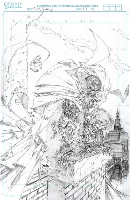 A okladka, o ktorej wczesniej wspomnialem rozpoczyna nowy cykl wariantow do Spawna, nazywa sie to "art process" i oznacza okladke kolorowa, czarno-biala i wersje "olowkowa". To oczywiscie oprocz wariantow A i B.