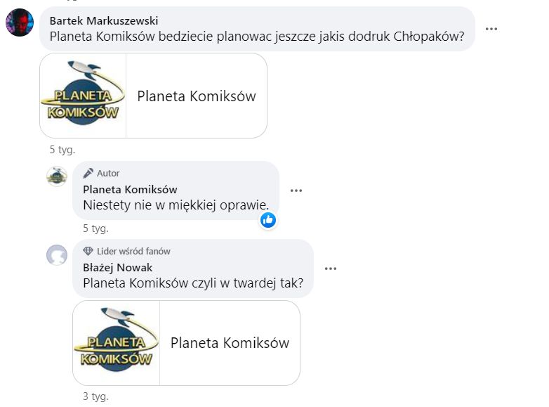 Wyszedł nowy sezon serialu, więc "Chłopaków" znowu wywiało ze sklepów. Miałem właśnie pisać, że mogliby się szarpnąć na jakąś nową edycję, tymczasem przejrzałem ich fb i znalazłem taki komentarz:
