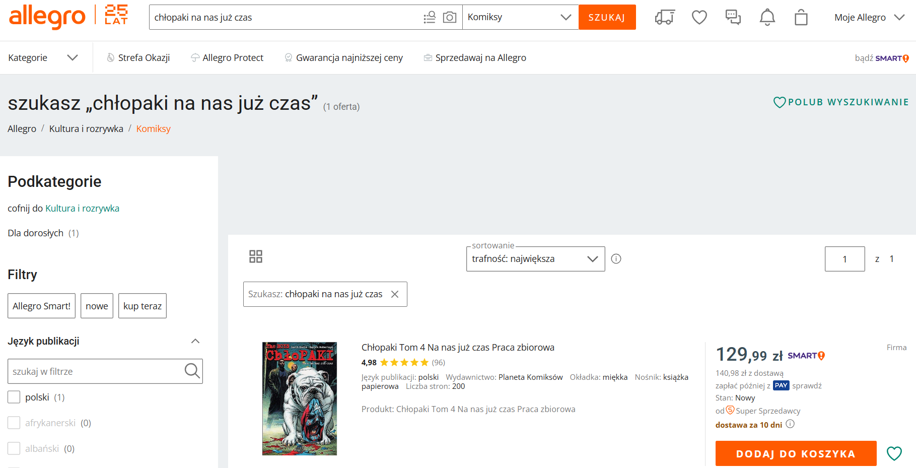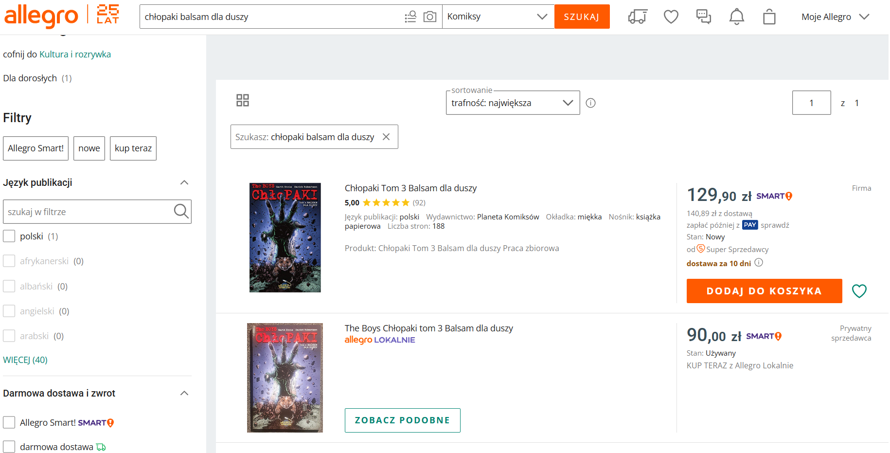 Nie szukam tego komiksu codziennie, więc pewnie dzisiaj wisi, normalnie jednak nie wisi, tylko na serwisach walają się pojedyncze sztuki za wielokrotność ceny albo brak danego tomu.