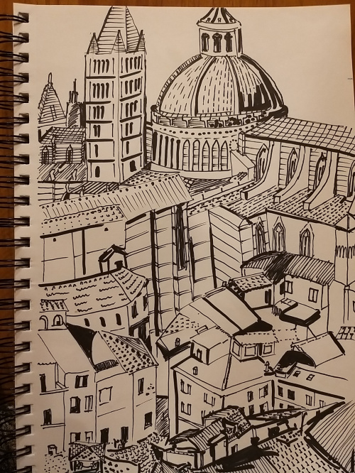 praca w toku, w tle będą kamienice i oczywiście nieodzowne dachowe wodne wieże