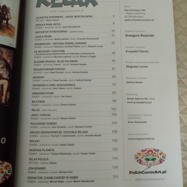 Mam wielką prośbę. Czy ktoś, kto kupił najnowszy, 39. numer "Relaksu" w wersji PolishComicArt, mógłby wrzucić - tutaj albo na PW - zdjęcie spisu treści i stopki? Interesuje mnie przede wszystkim nazwisko tłumacza/ki/y. Ogromne dzięki. 🙂