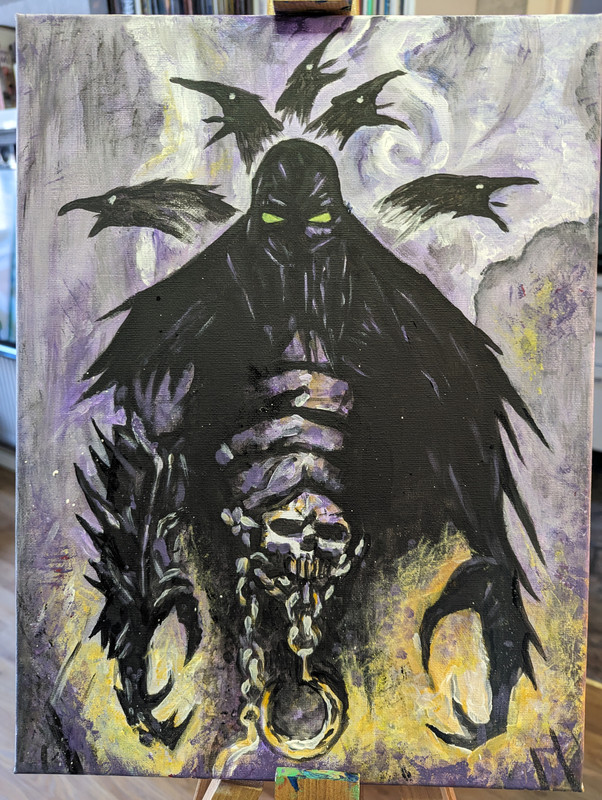 Zmieniłem zdanie. Jest w tych obrazach jakieś gotyckie uniesienie, pierwotna ciemność rozświetlona płomieniem żarliwego potępienia. Szkoda tylko, że ludzie zepsują to niesamowite wrażenie, jakimś oklepanym obrazkiem Spawna z giwerą, który pasował będzie do okładek wszystkich innych komiksów poświęconych tej postaci.