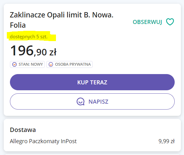 Na stornie była adnotacja, że ostatnie 3 sztuki.