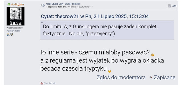 Ja rozkładam ręce, bo jedyne, z czym daliśmy tu ciała w mojej opinii (i czuję się tu współodpowiedzialna, bo jeszcze wtedy byłam w zespole SL), to zbyt mało transparentna komunikacja, że "okładki nie będą się idealnie składały". Ale podkreślę jeszcze raz: do głowy mi nie przyszło, że to może być problem...