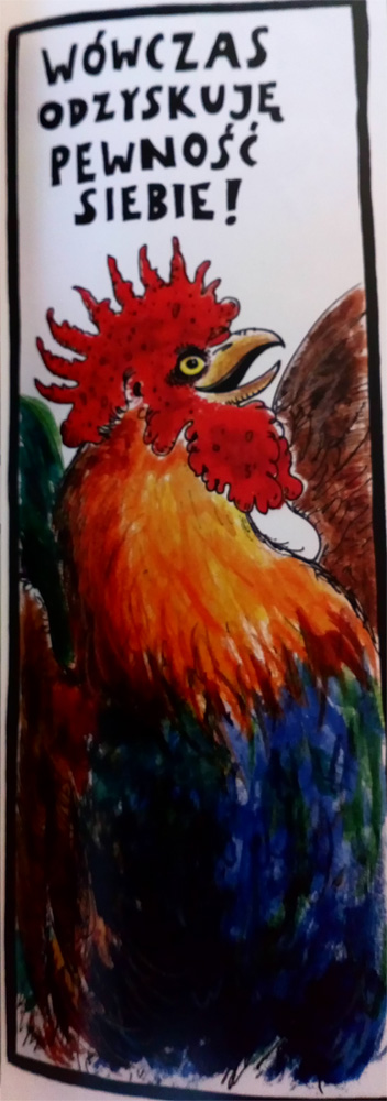 Mam nadzieję, że znając granicę autor podąży w stronę środka ;) Porównując z Donżonem, w którym rysunki też nie są realistyczne ani dopieszczone. Gdyby ktoś w dziadostwie zakrzyknął straż, to następnym kadrem by był policjant od frontu, z atrybutami przerysowanymi z wyszukiwań google, a pałka bez pokazania dłoni wychodziła z dolnej krawędzi kadru. W Donżonie przybiega stado zakutych w stal strażników na gęsiach. Sam bym tego nie wymyślił, a rysunek podrasowuje satyrę. Z miejsca przychodzą skojarzenia małpy stronk, zakuty łeb, czy głupi jak gęś. Rysunek dodaje do tekstu dodatkową treść, a nie jest dodany na siłę.