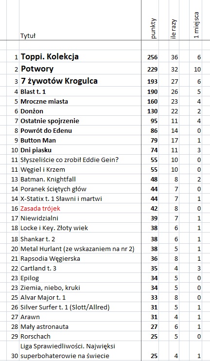 Poniżej wyniki głosowania na najlepsze komiksy roku 2022 wg użytkowników forum.