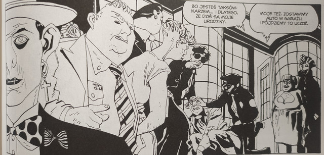 Dobra, ale wymyśleć to jedno, sztuką jest przełożyć te wszystkie myśli na obrazki i to jak narysowany jest komiks to po prostu mistrzostwo świata. To jak autor operuje czernią i bielą to jest poezja, wszystkie miejsca w których dzieje się akcja, bary, biura, hotele,komisariaty czy ulice tętnią swoim własnym życiem , tu nie ma pustych kadrów, praktycznie na każdym tyle się dzieje że głowa mała.