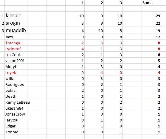 Gratulację dla zwycięzców i dla wszystkich uczestników. Szczególne dla @Jaxxa, który w ostatnim etapie podjął rękawicę i sprawił, że był on bardzo emocjonujący do samego końca.