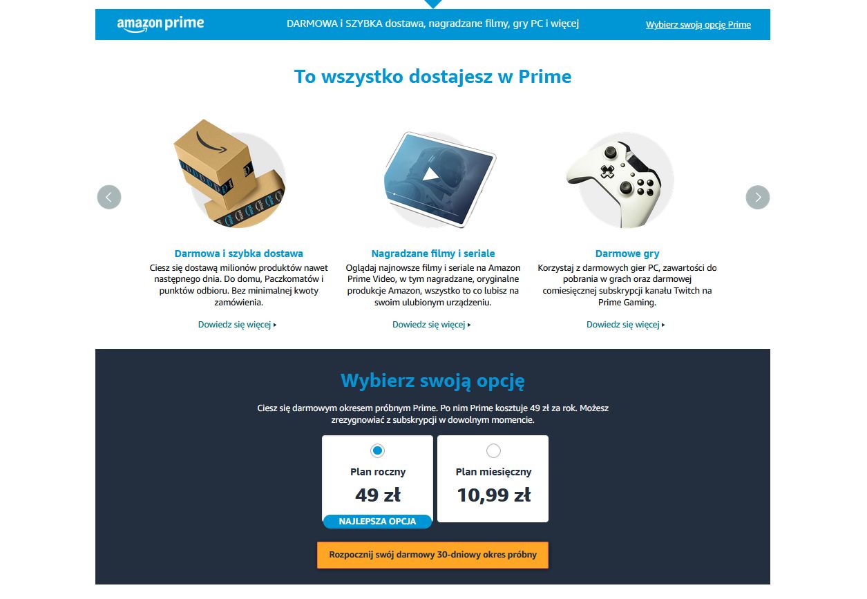 Od dzisiaj Amazon Prime (w tym m.in. Video, Gaming, darmowe dostawy z amazon.pl) za 49 zł/rok + pierwsze 30 dni za free.