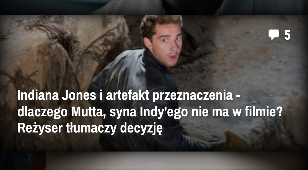 syn Indiany według mnie żyje i ma się dobrze: aberracje związane z cofnięciem się ekipy Indiany do przeszłości w okolicy konfliktu punickiego i spotkanie Archimedesa, ofiarowanie mu Tarczy i ten cały myk z zegarkiem sprawiły, że ich powrót do nazwijmy to ,,teraźniejszości", która mogła okazać się tak naprawdę nową linią/odnogą czasu w tej rzeczywistości, przywrócił na swoje miejsce syna Jonesa, który nie zginął na wojnie, ale nikt z ekipy o tym nie wie, gdyż ledwo co nastąpił ich powrót do ,,normalności". I tak, tym samym nie wyklucza się - chyba że uprze się przy tym Lucasfilm Ltd. i Disney - powrotu LaBeoufa do roli następcy Indiany Jonesa, któremu ma kto towarzyszyć, oj ma!
