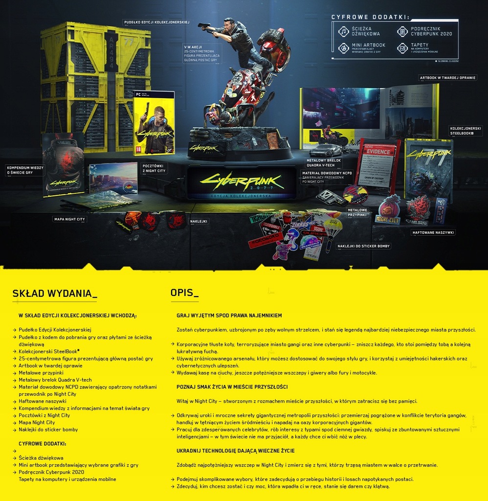 No dobra, ponoć samych zamówień edycji kolekcjonerskiej "Cyberpunk 2077" w wersji, czy to na PS4, czy na PC etc., jest całe multum W tym sęk, że wydawca, jeśli wierzyć tym założeniom, nie nadąża z tego rodzaju zamówieniami, dlatego brakuje na magazynie takich oto egzemplarzy. Zresztą niedawno gra poszła do tłoczni, więc daje mi to do myślenia, że... chyba nie wiem, jak funkcjonuje przedsprzedaż "Cyberpunk 2077" w edycji kolekcjonerskiej. Cena takiego zestawu - przyznam szczerze wygląda on iście cyberpunkowo obłędnie (zawartość na Ps4, PC, Xbox w fotografii poniżej) - waha się od 1200 - 1400zł... o ile rzeczywiście jest jeszcze dostępna. Wszystko to wygląda idyllicznie i pięknie, ale czy warto?... Dołożyć 800zł i jest Ps5... Teoretycznie. ;)