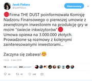 "Gra The Dust na podstawie książek Jacka Piekary będzie kosztować ponad 7 mln zł, pozyskano 3 mln zł od inwestora