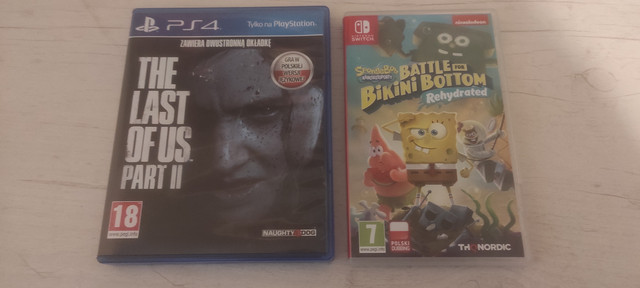 Będzie grane... Na kuliste pioruny Eterni! Śmiem twierdzić, jedne z lepszych tytułów growych na te platformy, które reprezentują gry (zdjęcie).. O TLOU II, nie ma się co rozwodzić - kontrowersyjna, wielowymiarowa fabuła, przykrywająca gruba warstwą ciągle niby tą samą mechanikę gry, rozwoju postaci etc. A SpongeBob... Taa... to już istny klasyk na Switcha, i to z legendarnym polskim dubbingiem...  Szykuje się transcendentne growe doświadczenie. Bang!