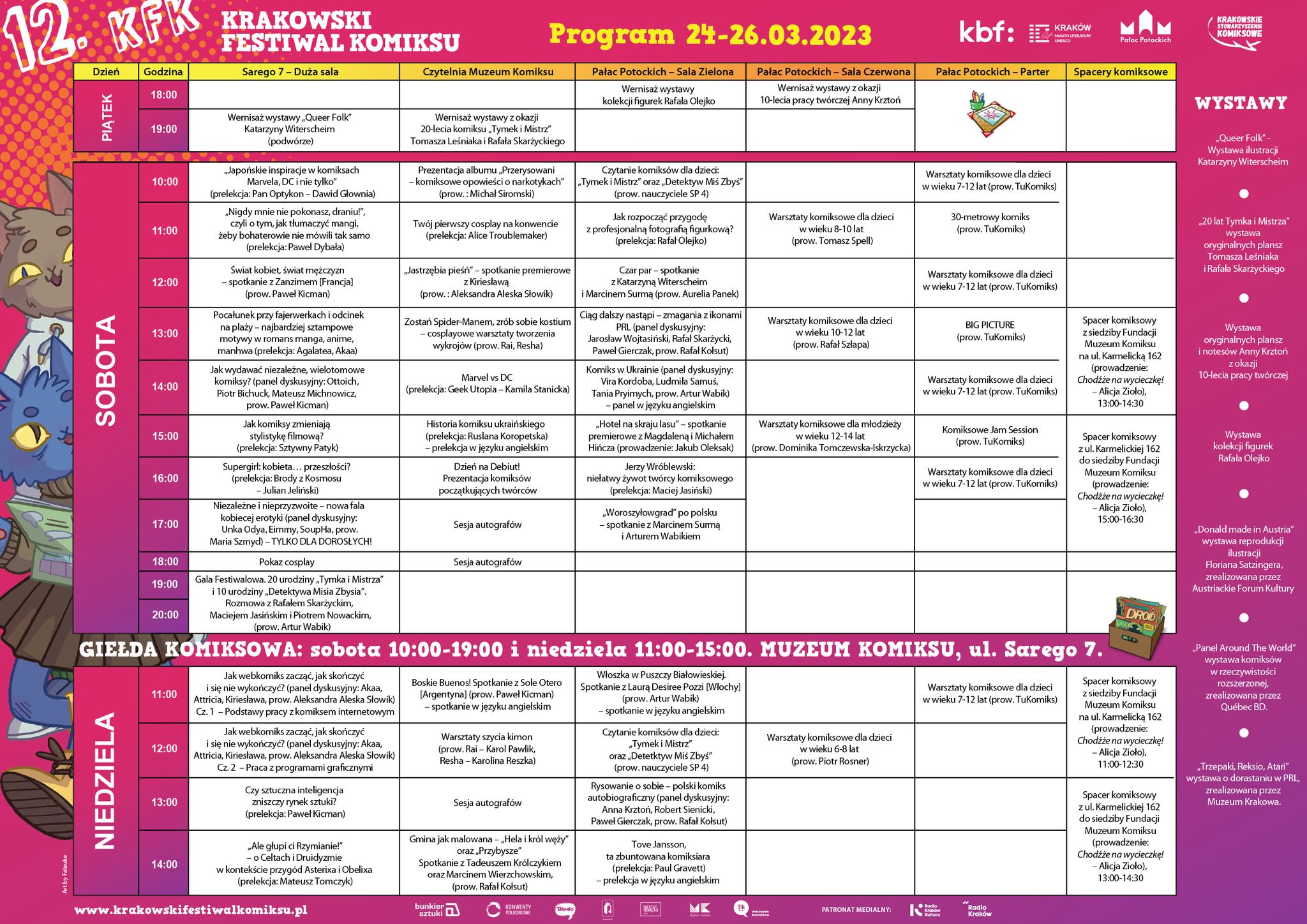 Zgodnie z obietnicą publikujemy rozpiskę strefy autografów podczas 12. Krakowskiego Festiwalu Komiksu 🤗