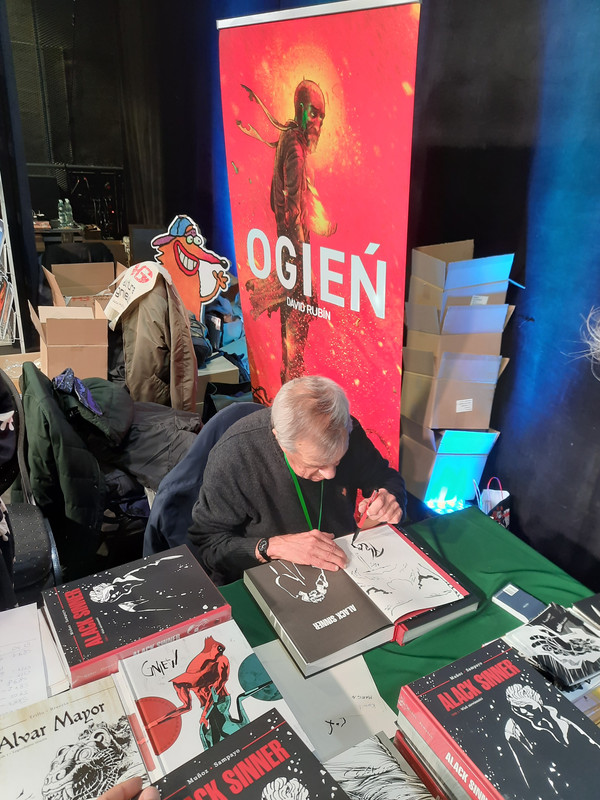 Zmęczony i dość znudzony ostatnimi festiwalowymi latami ruszyłem do Krakowa na kilka sobotnich godzin zachęcony planowaną obecnością Davida Rubina i Jose Muñoza. Pierwszy ostatecznie nie dotarł, drugiego - żywą legendę - super było zobaczyć na żywo. W planach miałem co prawda zdobycie od niego rysografu, ale na miejscu okazało się, że numerki i kolejkony to nie sport dla mnie. I też spoko.