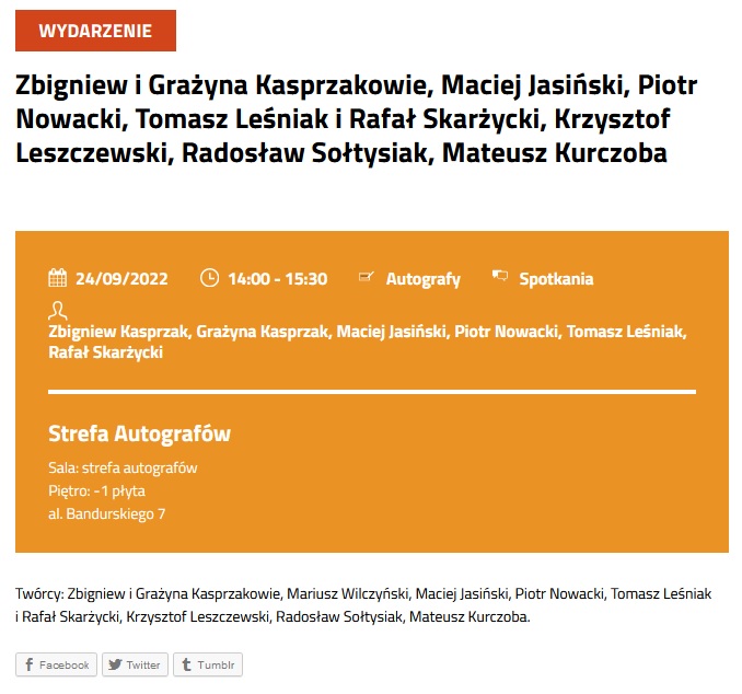 Tymczasem powróciła rozpiska strefy autografów i wbrew wcześniejszym spekulacjom jakiś kosmicznych rewelacji to tam nie ma. Ciekawi mnie kiedy będzie regulamin.