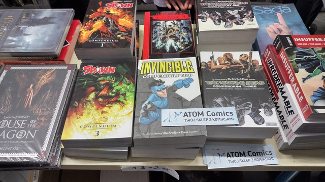 Byłem, pokręciłem się tu i tam, kupiłem i wróciłem ;) Z ciekawostek: można wyrwać za dwie stówki plakaty od FineArts. Widziałem też na stoisku Gildii Prapradziadka w obydwu wersjach po kilka sztuk. Nowy Rusek, nowa Komiksoteka, nowe powiększone Tadeusze od Ongrysa. Obejrzałem też drugi tom Tytusopedii, wygląda fajnie poza kolorkami, ale ogólnie daje radę. Antologia growa taka sobie, podobnie jak katalog wystawy Rosińskiego.