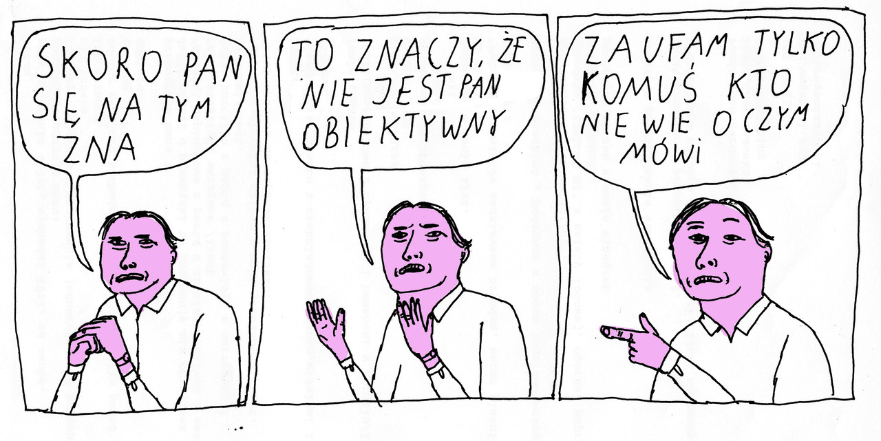 Tutaj obnażyłeś się ze swojej niemocy intelektualnej, potwierdzając tym samym, że należysz do straconego pokolenia niemyślącego suwerennie. Moja odpowiedź była jasna - nie musisz napisać lepszego komiksu, by móc krytykować ostatnio przeczytany. Tak samo nie muszę organizować czy pomagać organizować festiwal, by wiedzieć, że karmieni jesteśmy niskiej jakości imprezą handlową ze znikomymi fragmentami autorskimi. Te ostatnie na skali światowej nie łapią się nawet do przeciętnych.