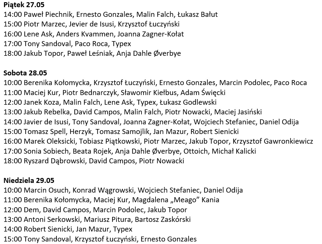 Uwaga, aktualizacja. W strefie autografów pojawią się nowi goście: Łukasz Bałut (piątek, 14:00) oraz Łukasz Godlewski (sobota, 12:00). Poniżej zaktualizowana lista gości.