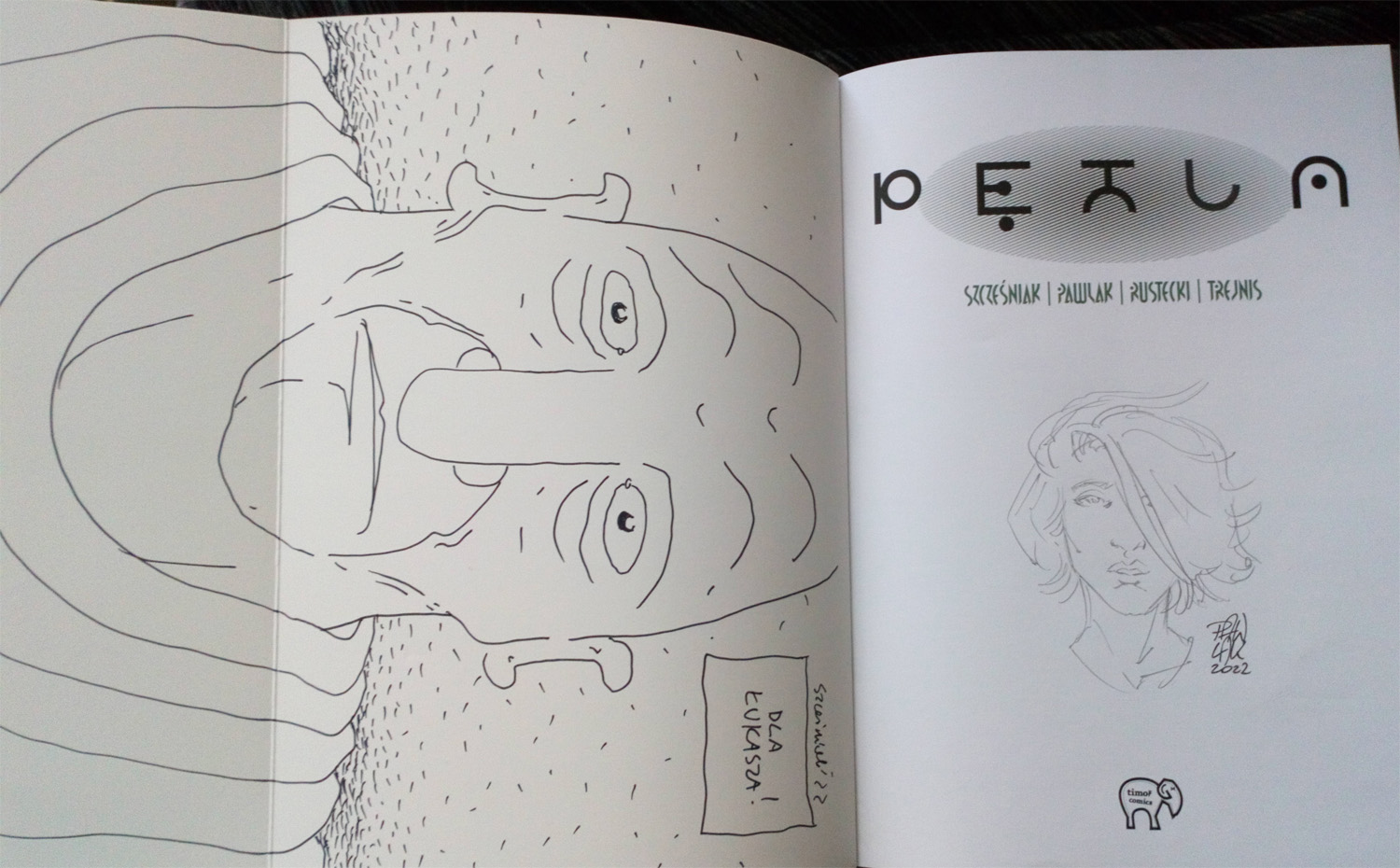 Dominik "Szczezz" Szcześniak i Grzegorz Pawlak w "Pętli". Rust gdzieś uciekł (jeszcze go dorwę :P), a Rafała Trejnisa w ogóle nie było (to samo co u Rusta :P). "Pętla" jest planowana na 5 tomów i dziwne jest, że na albumie, który otrzymaliśmy nie ma informacji, że jest to jedynka.