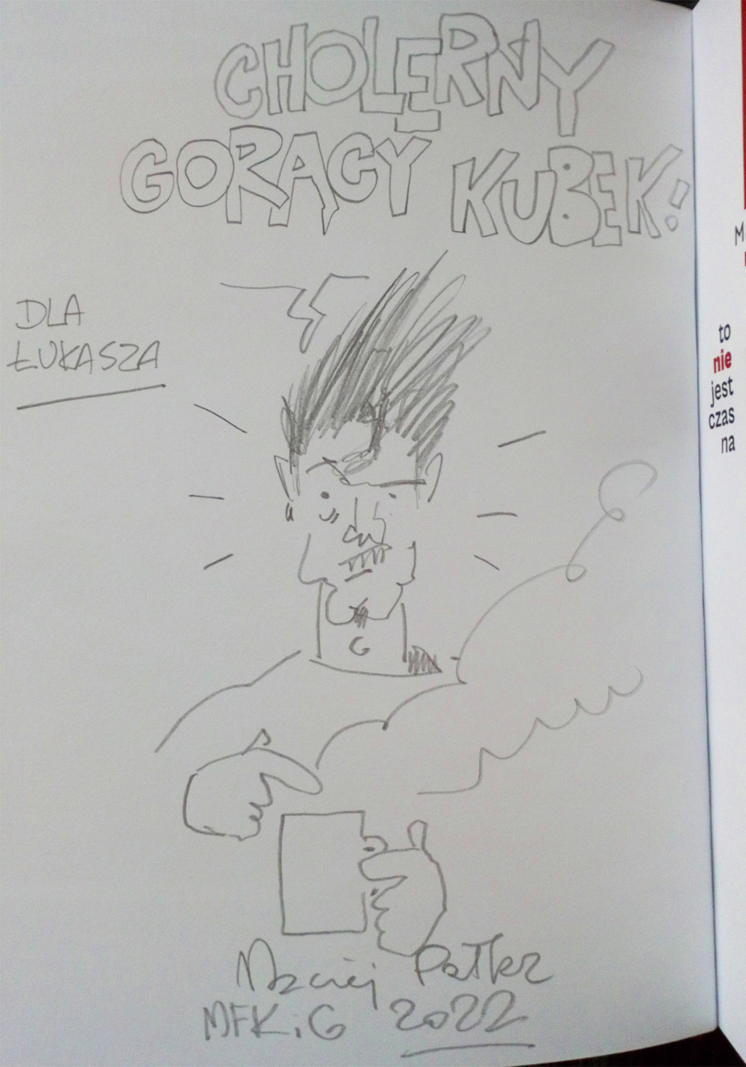 Świetny rysunek od Roberta Konsztata oraz autograf w "Komiks i My - 6". W tym miejscu wielkie podziękowania dla @keram2, który sprezentował mi białą kartkę na której powstało to dzieło :)