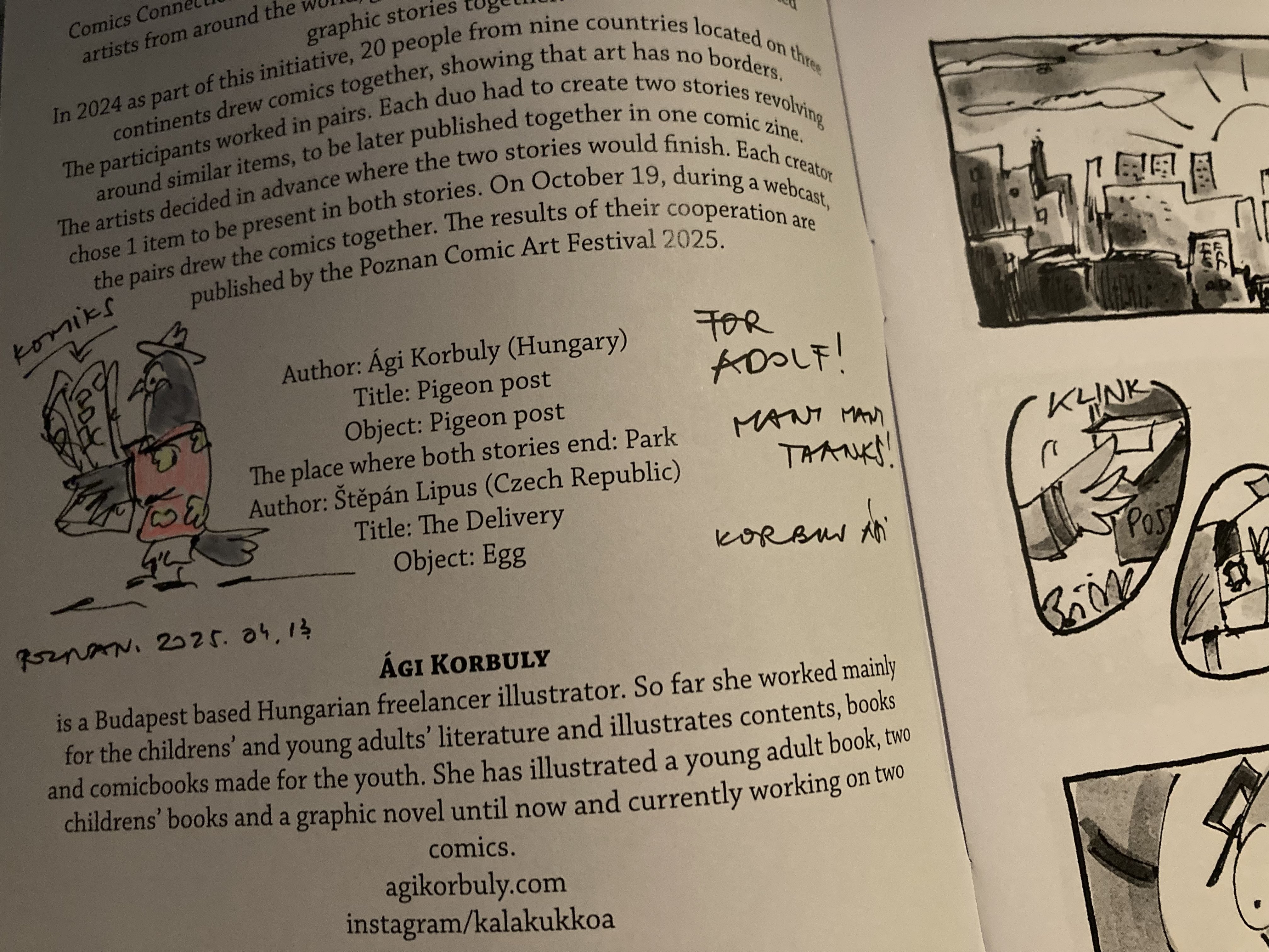 https://www.instagram.com/koskazoli/„It Came from Younder” to zin Zoltana, który możecie otrzymać podczas festiwalu.Ági Korbuly is a Budapest based Hungarian freelancer illustrator. So far she worked mainly for the childrens’ and young adults’ literature and illustrates contents, books and comicbooks made for the youth. She has illustrated a young adult book, two childrens’ books and a graphic novel until now and currently working on two comics. You can find her works at agikorbuly.com and on Instagram @kalakukkoa.