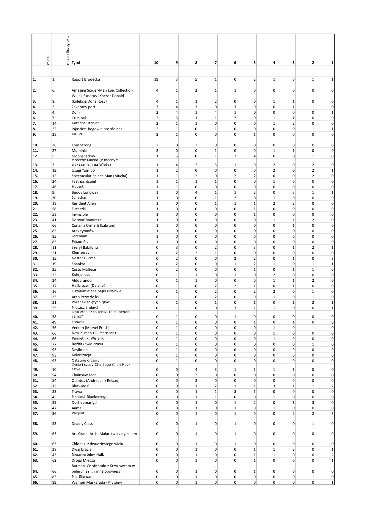 Kolejno - tytuł, średnia, ilość oddanych głosów