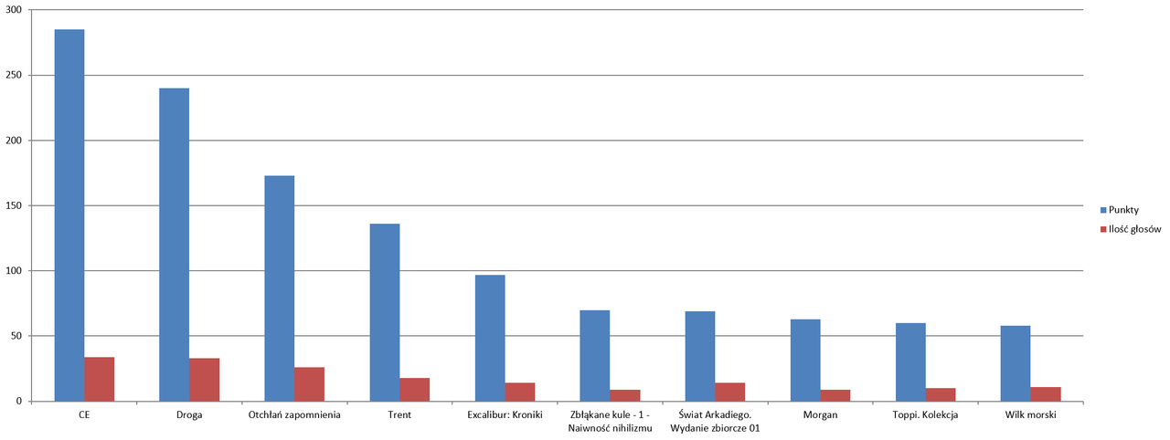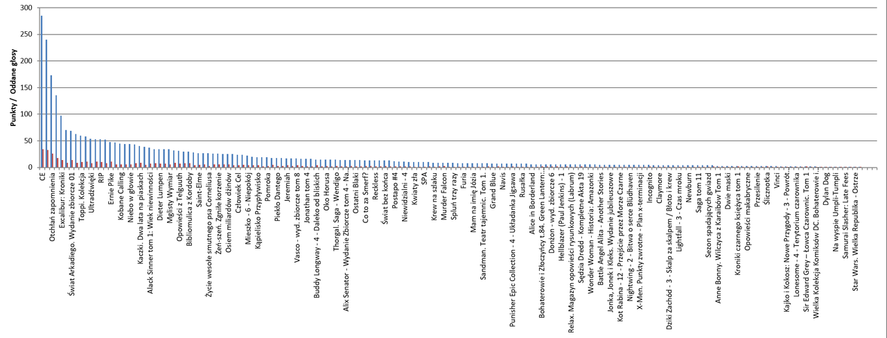 - najwyżej notowanym komiksem bez żadnej dziesiątki jest "Toppi. Kolekcja": 9. miejsce