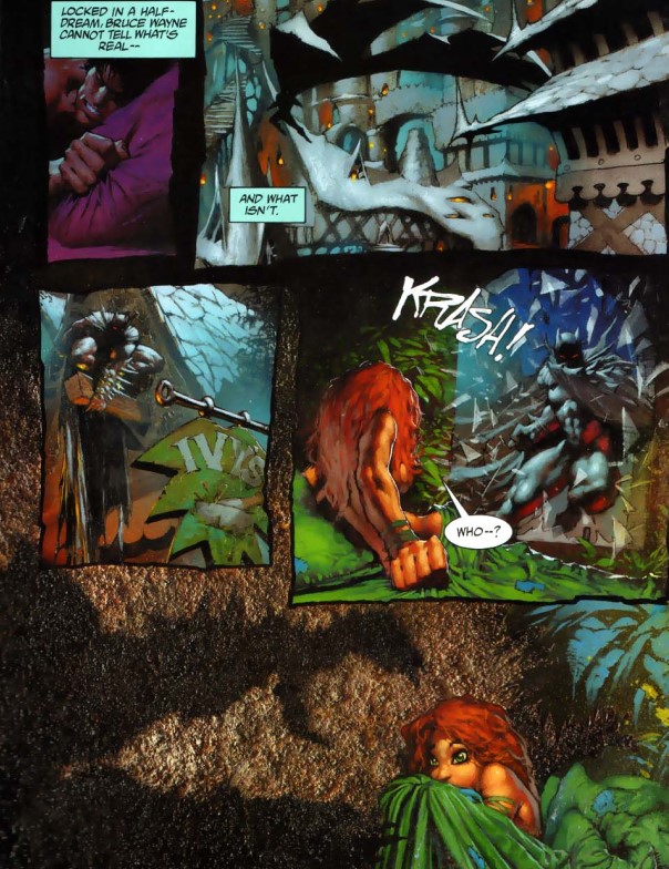Powróciłem ostatnio do jednej staroci z Gackoludziem, tym razem spod szyldu Elseworlds. Nie przepadam za bradzo za tymi historiami, ale i tam mozna znaleźć różne pyszności. Oldschool to "Batman & Demon - A Tragedy" napisana przez nieodżałowanego Alana Granta. Opowieśc dośc prosta, tym razem w konwencji fantasy. Bruce Wayne spędza noce zamykany przez Alfreda w komnacie, bo ma alergię na światło księżycowe. ;D Tymczasem w miescie Gotham istota nazywana Bat-Demon zabija przestępców. Wayne pod wpływem swojej ukochanej rozpoczyna śledztwo, zwłaszcza gdy okazuje się, że po śmierci jego rodziców nie ma śladu w archiwach miasta. Tak jakby ich nigdy nie było - rodziców, nie archiwów. #Alfredcośukrywa. Rymujący Etrigan, Killer Croc, Poison Ivy, Catwoman, wrzutka ze Slainem, Merlin, pistolety-kusze, śmiercionośne promienie z rąk. Brzmi głupawo, ale są fabularne twisty i smutny finał. Klikam tu jednak o tym, bo oprawa graficzna - ochocho: