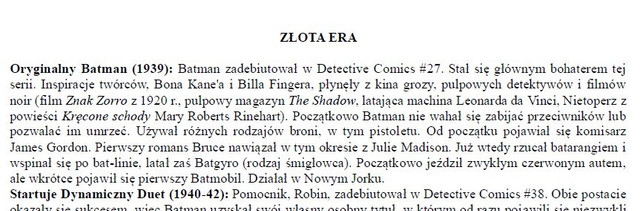 3. Ponieważ historie z lat 1939-85 pojawiły się w Polsce dopiero niedawno i w formie szczątkowej większość historii Batmana pozostaje u nas nieznana. Dla polskiego czytelnika jest to okres w pewien sposób przezroczysty - nie budzi żadnej nostalgii, liczne współczesne nawiązania nie budzą skojarzeń i pozostają nieczytelne.