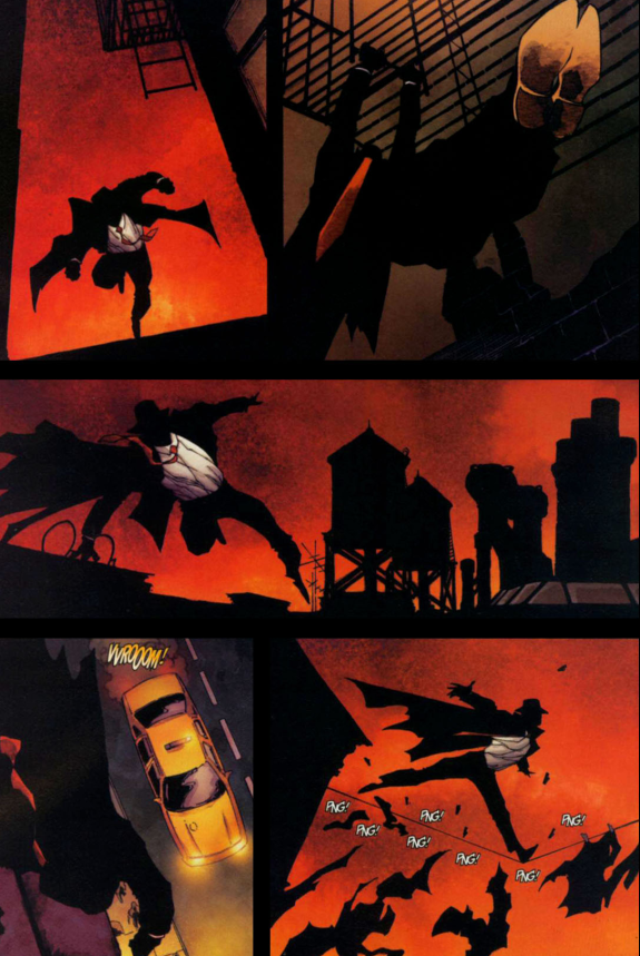 Lubię ten komiks za to jak Mr Q pokazuje upał - żar dosłownie wylewa się z kadrów, a czytelnik wręcz go "czuje" (pomaga tu Richard Isanove ze swoją paletą kolorów). Tym gorącym klimatem przypomina trochę początek "Mroczny Rycerz powraca" i nie jest to jedyne nawiązanie - wydaje się, że Joe tworząc "Father" trochę chciał zrobić swoją "ostateczną" opowieść o Daredevilu. Bo niby jest ten komiks bezpiecznie osadzony w kontinuum przygód Murdocka, ale też Quesada tak bardzo zamieszał w kwestiach "okołooriginowych", że całość zahacza o swoisty "elseworld". W każdym razie zastosowany w końcówce fabularny myk jest tak zaskakujący, że automatycznie wrzuca opowieść na półkę wyżej od zwykłego thrillera.