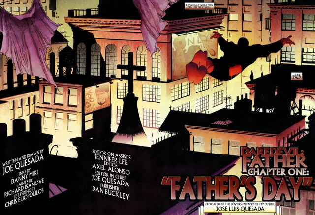 I tak się stało. W 2004 roku Marvel rozpoczął publikację całkowicie autorskiej miniserii Quesady (no dobra, inkował Danny Miki) poświęconej bohaterom jego dzieciństwa: Daredevilowi i... ojcu. Co prawda, między zeszytami 1 a 2 był ponad rok przerwy, ale ostatecznie plan został zrealizowany.