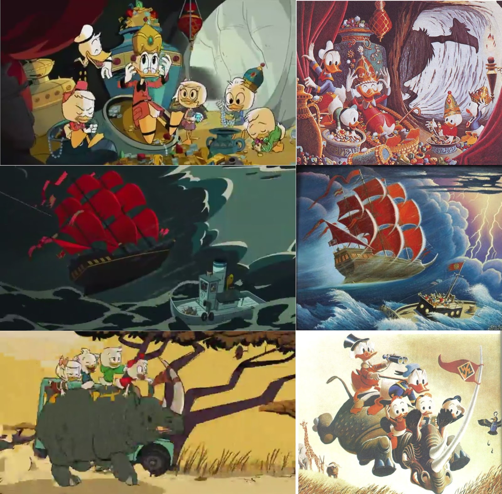 WOW - w 3 sezonie DuckTales w czołówce przewija się przez chwilę scena jak na obrazie Barksa. A zauważyłem to dopiero teraz bo dopiero teraz czytam "Latającego Holendra".